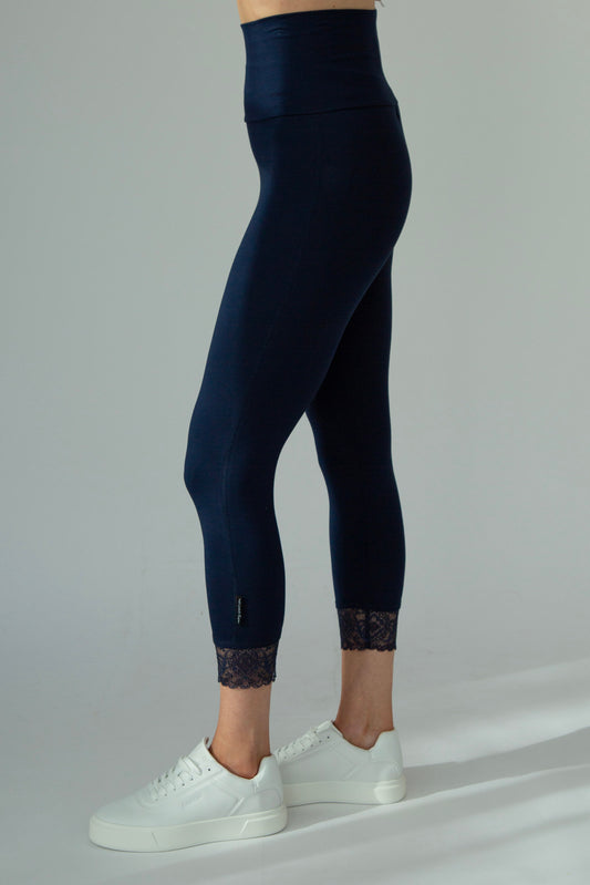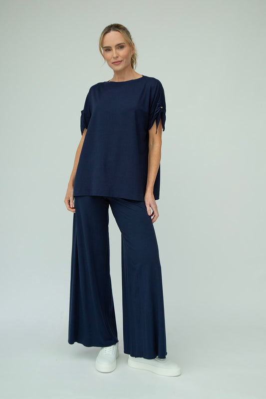 Navy Viscose Jersey Ellen Crop Palazzos (narrow)
