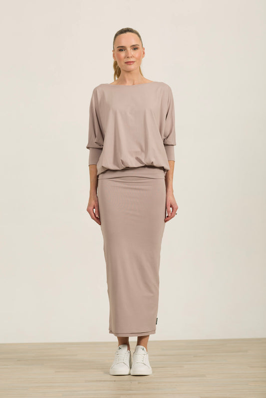 Blair Viscose Jersey Oversize Frill Hem Tunic (Mink)
