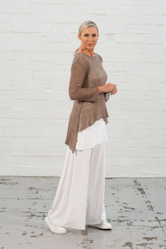 Harper Viscose Jersey Asymetrical Skirt (Mink)