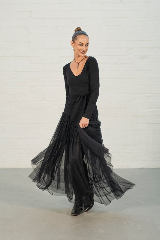 Rowan Double-Layer Tulle Skirt (Black & Navy)