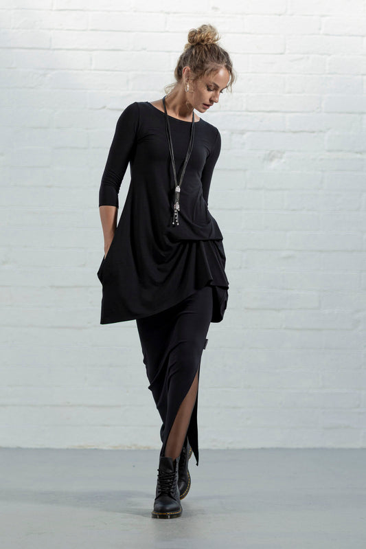 Harper Viscose Jersey Asymetrical Skirt (black)