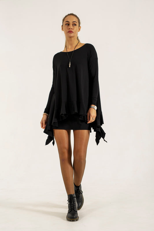 Blair Viscose Jersey Oversize Frill Hem Tunic (Black)