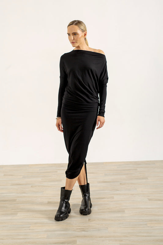 Harper Viscose Jersey Asymetrical Skirt (black)
