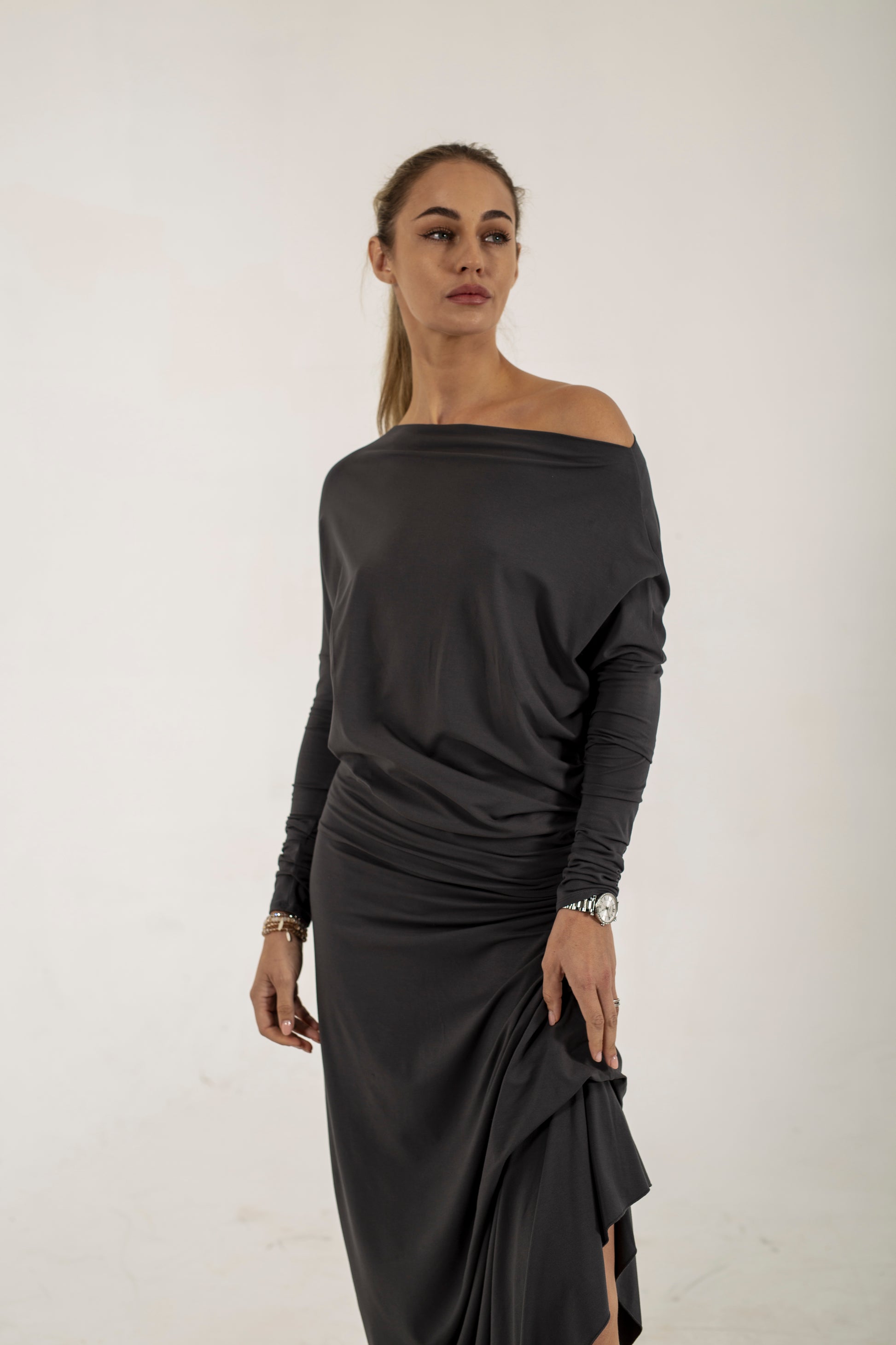Our heavier-weight premium jersey (Fabric 2) offers gentle structure with beautiful drape. It holds shape without clinging and gives a luxurious feel that elevates even the simplest silhouette.