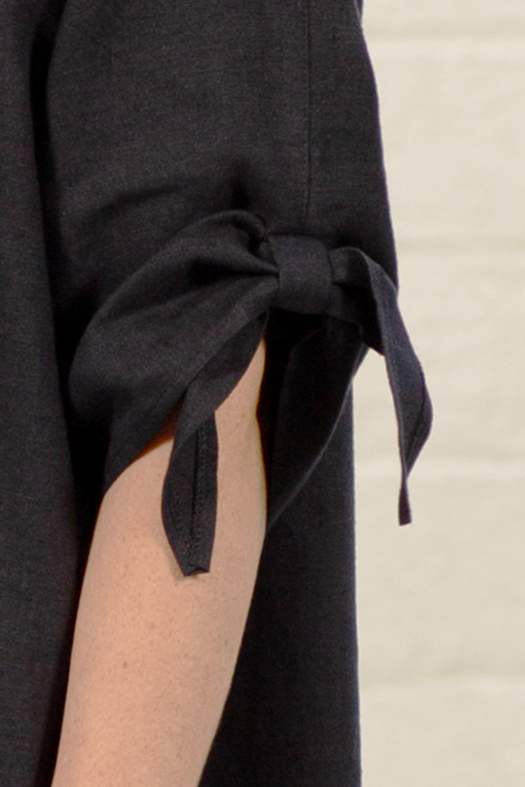The sleeves have a gorgeous false ‘tie’ detail that does not require tying! It is a simple, straight cut, designed so you feel ready to put it on over jeans, linens, leggings, tights or bare legs. With the Claudia, you will be ready just to walk out the door.