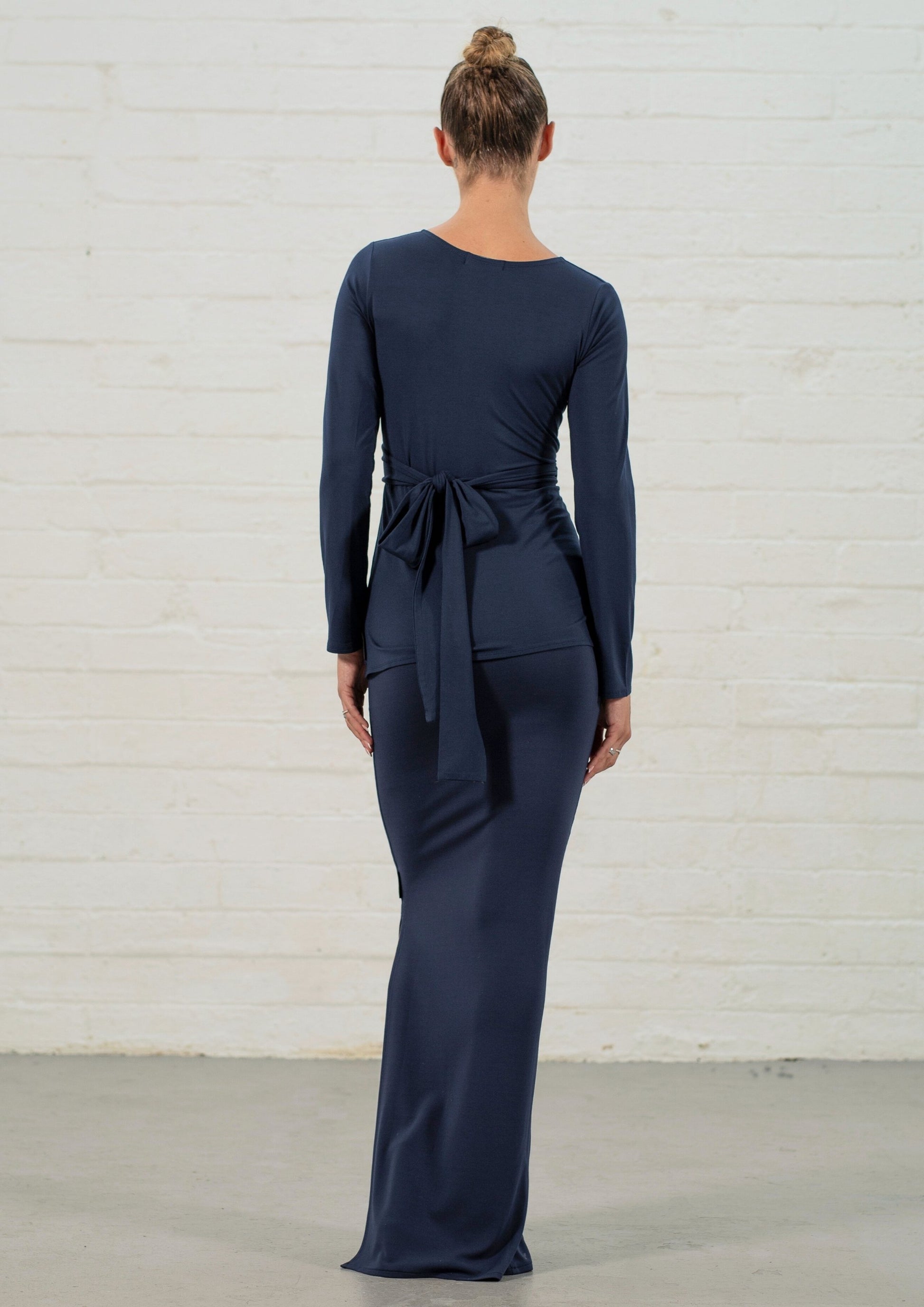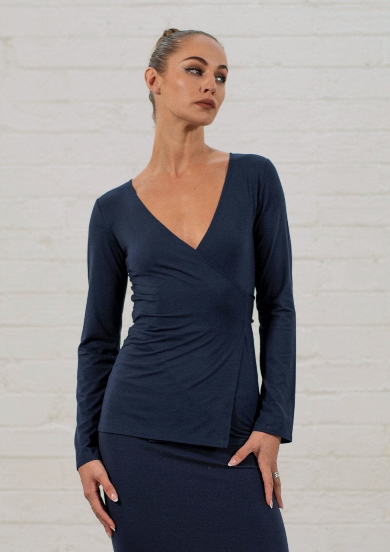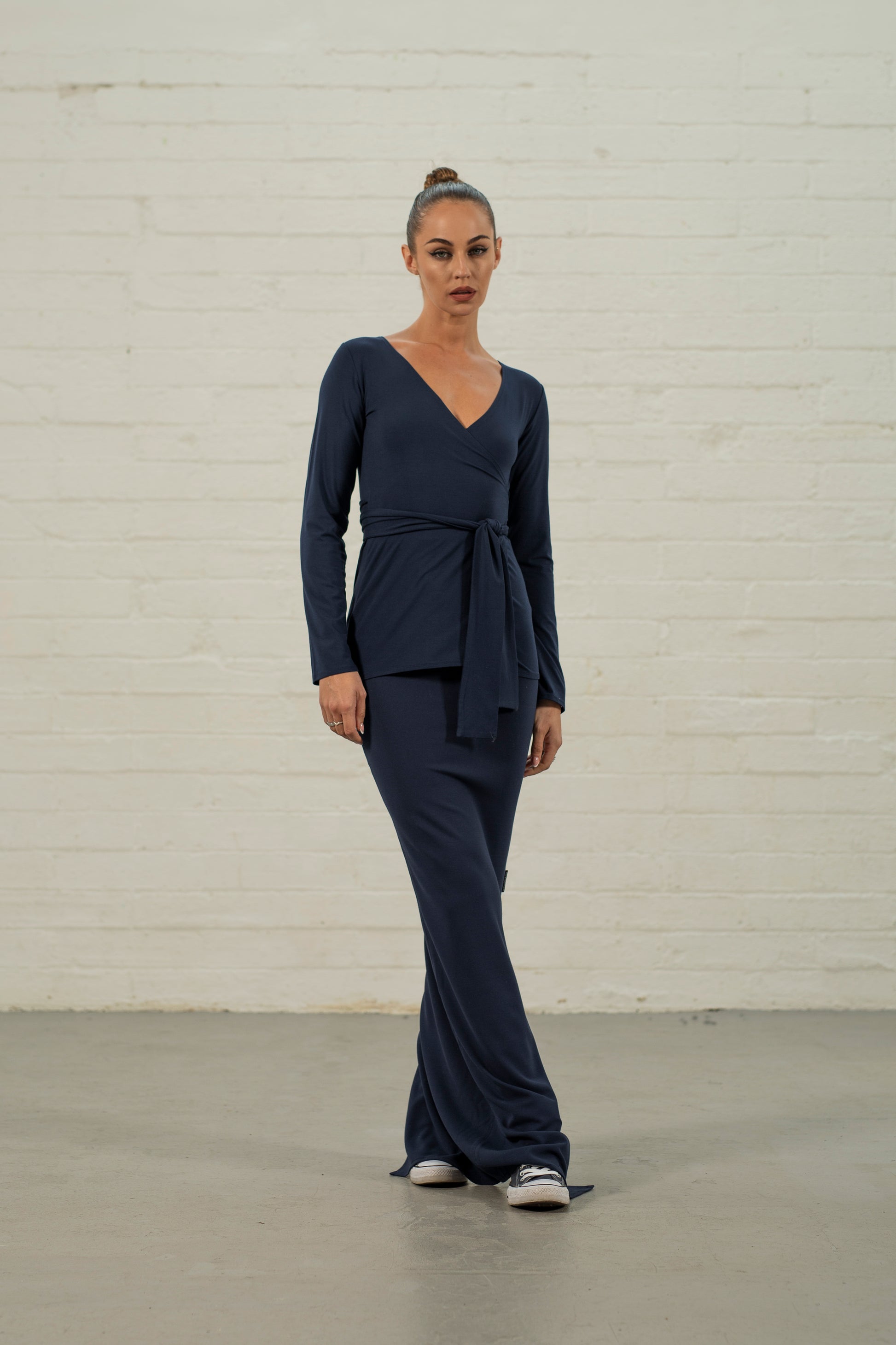 Originally named something else, the Morticia wrap top earned its name when we saw it in action during the photoshoot. Bring the attitude, ladies—this top is made for making a statement. Crafted in our Fabric 2 jersey, it has a snug, fitted shape with a deep V-neck when worn on its own. You can tie it at the back or wrap the long ties around and knot them at the side for a chic detail.