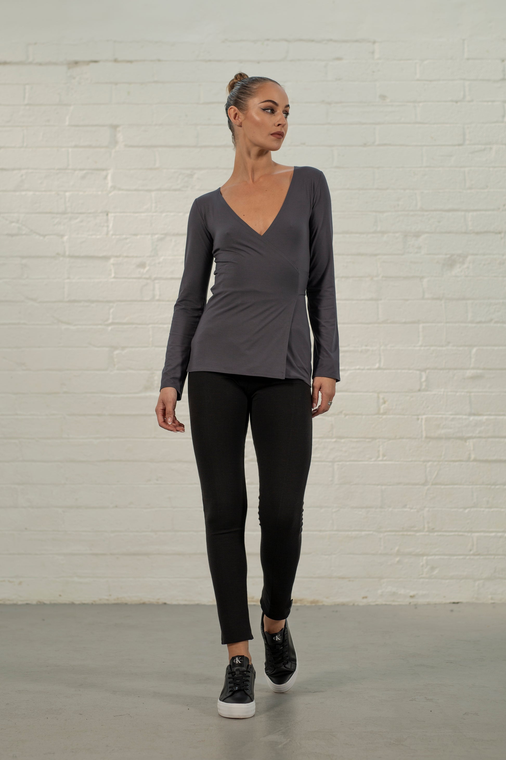 This season, the Lola Leggings are available in black and lead, featuring our signature yoga waistband for ultimate comfort and versatility. For flattering detail, they have a side panel with cover stitch and three tucks at the end, designed to shape the legs beautifully.