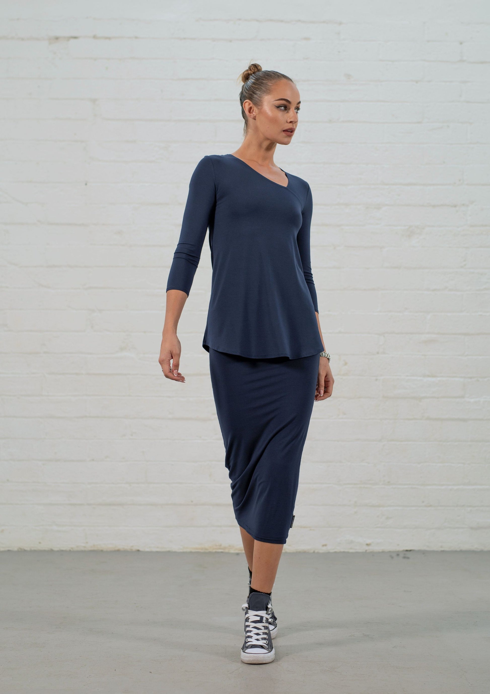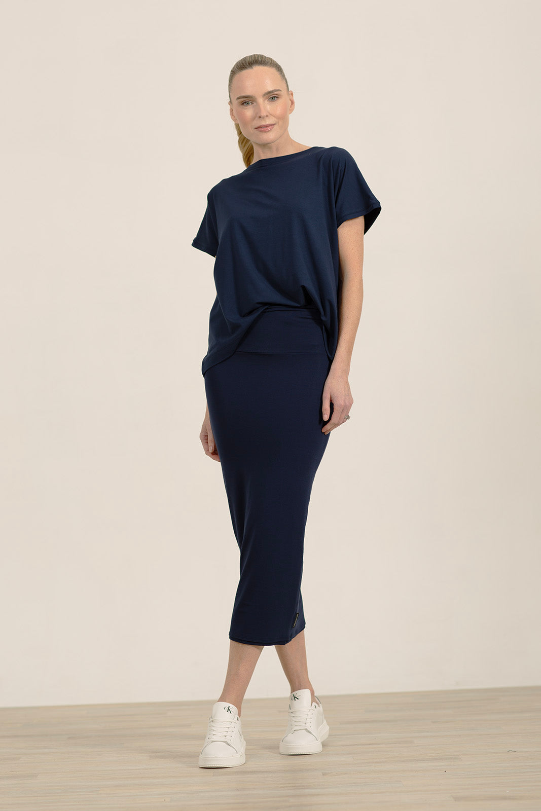 This is our classic double layer jersey skirt. It mimics the traditional pencil skirt but that's where the similarities end!