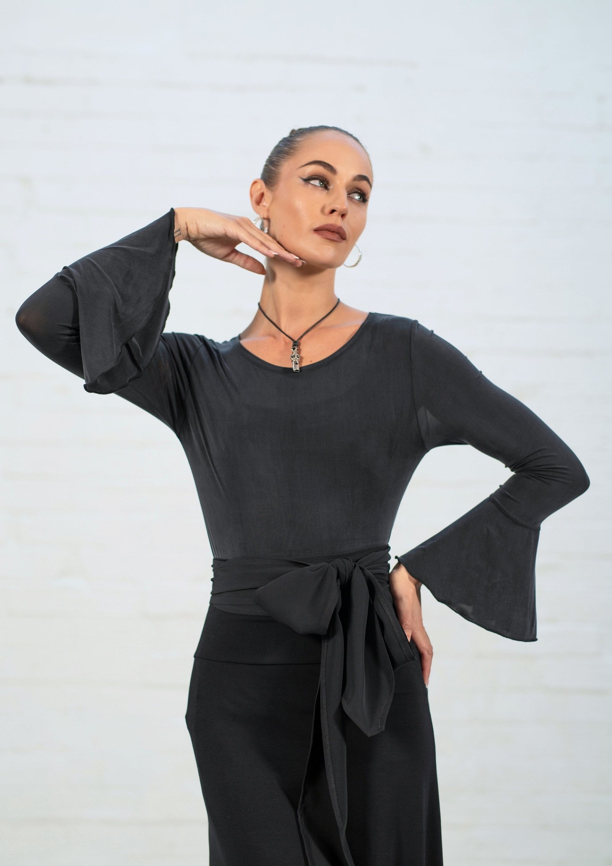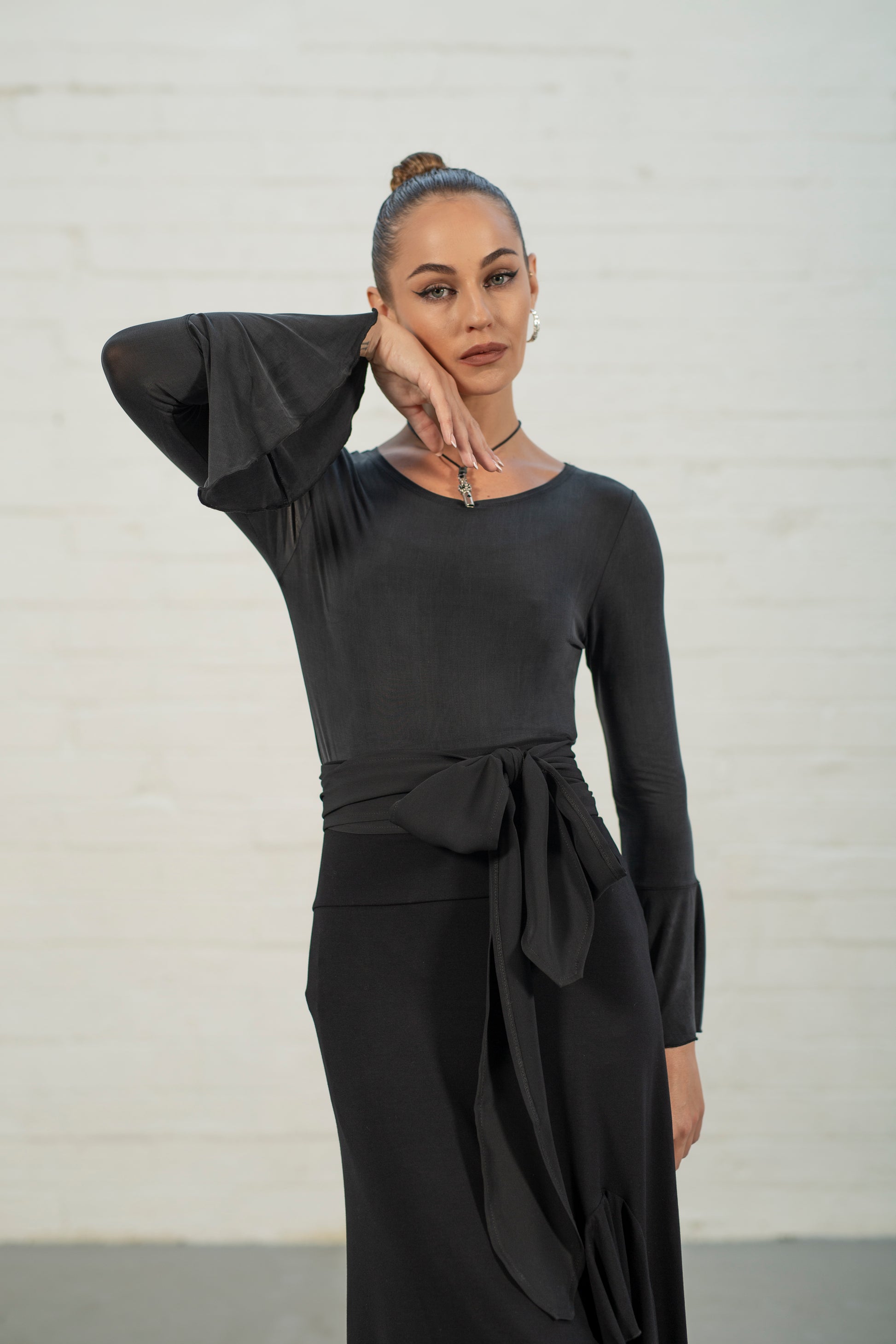 Rhea Flute Sleeve Top - Silky Black Jersey