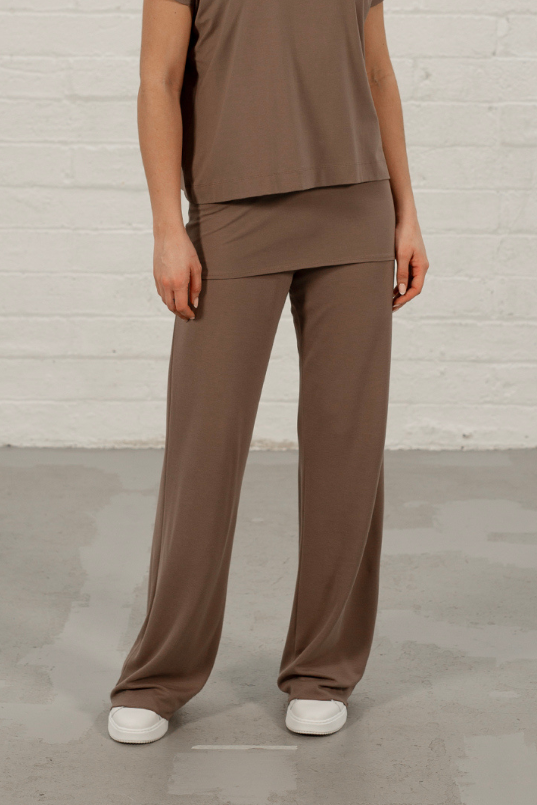 The Addison Palazzos feature the classic yoga style waist band and a straight leg with babylock hem in our heaviest weight double jersey fabric.